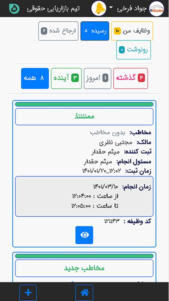 وظیفه ها بین اعضای تیم شما به گردش در می آید.می توانید بدون محدودیت زمانی و مکانی،اعضا و همکاران خود را مدیریت نمایید و گزارشات متنوع بگیرید.