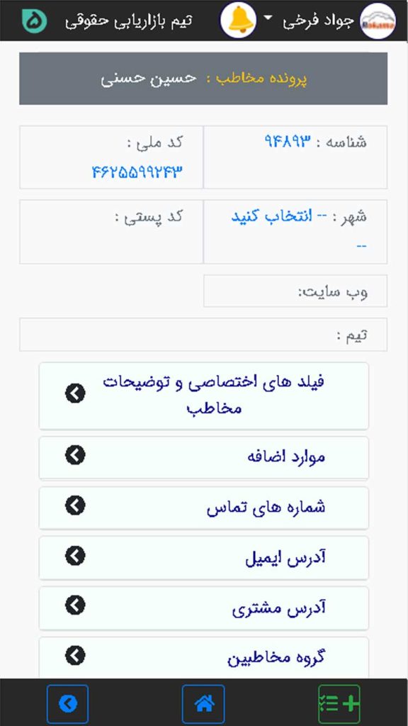 - مدیریت پرونده مخاطب(تلفنها، آدرسها، اسناد، پیامها)